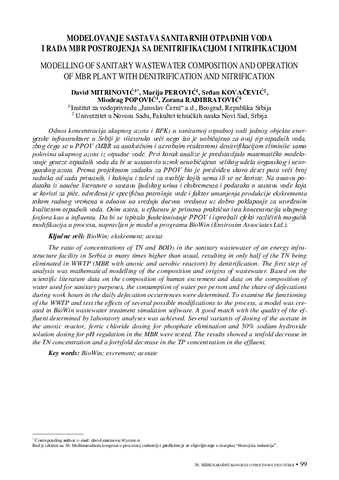 Modelovanje sastava sanitarnih otpadnih voda i rada MBR postrojenja sa denitrifikacijom i nitrifikacijom